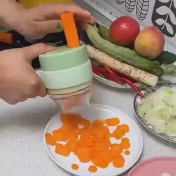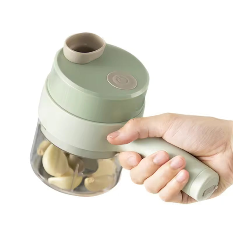 Transform your meal prep with this versatile 4-in-1 handheld electric vegetable cutter. Effortlessly chop, slice, and process garlic, peppers, chilies, onions, celery, ginger, and meat with precision and speed. The wireless USB-rechargeable design offers cordless convenience for any kitchen task. Compact and lightweight, this multi-functional food processor eliminates tedious hand chopping while delivering consistent results. Perfect for busy cooks seeking efficiency without sacrificing quality. One device replaces multiple tools, streamlining your cooking workflow and saving valuable preparation time.